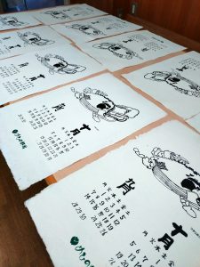 みしまの工房和紙班で漉いている牛乳パック再利用和紙を使用したカレンダー。